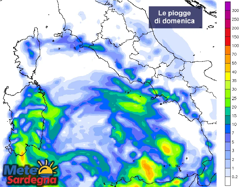 Le precipitazioni ci seguiranno per tutta la giornata di sabato, risultando inizialmente ben più intense sulla fascia occidentale. Nell’interno, causa l’aria fredda in arrivo, potrebbero svilupparsi grosse celle temporalesche, responsabili presumibilmente di qualche nubifragio e grandinate. Lungo la fascia orientale – sottovento rispetto alla ventilazione nordoccidentale – inizialmente il tempo sarà variabile e pioverà a sprazzi. Ma nel pomeriggio, data la rotazione ciclonica dei venti, anche qui potrebbero scatenarsi rovesci di pioggia e temporali. Per i dettagli puntuali sul meteo di domani vi rimandiamo agli appositi aggiornamenti già presenti nel sito.