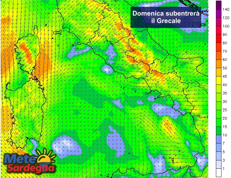 Sulla distribuzione dei fenomeni inciderà, come consuetudine, il vento. Vento che rimarrà sostenuto anche domenica, pur in attenuazione nella seconda parte della giornata. Vento che si orienterà da nord/nordest ed è per questo che le precipitazioni più intense si distribuiranno maggiormente lungo la fascia orientale. Nel Sulcis Iglesiente, laddove ci aspettiamo i rovesci più corposi, insisterà un vivace Maestrale.