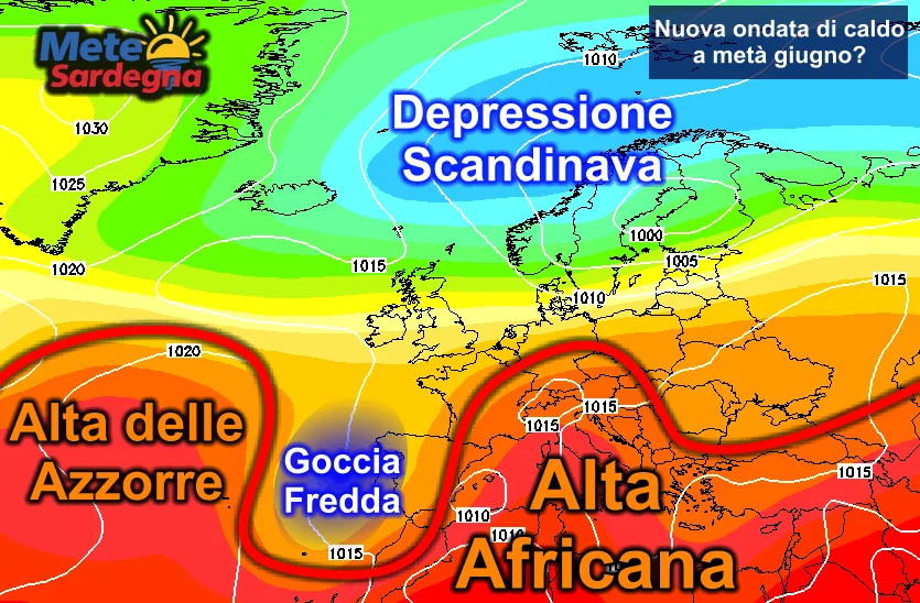 Ora passiamo all’analisi del MultiModel. Abbiamo preso come riferimento la data del 13 giugno, perché in grado di esprimere graficamente le nostre deduzioni: l’isolamento di una goccia fredda iberico-marocchina potrebbe supportare l’elevazione del promontorio anticiclonico africano sull’Italia. La Sardegna, anche stavolta, rischia di trovarsi sotto la bolla sahariana con temperature che schizzerebbero rapidamente oltre 35°C. Di certo è prematuro fornire dettagli, ma qualora dovesse realmente realizzarsi la configurazione barica in oggetto ecco che la terza, violenta ondata di caldo stagionale – dopo le due di maggio – verrebbe servita su un piatto d’argento.