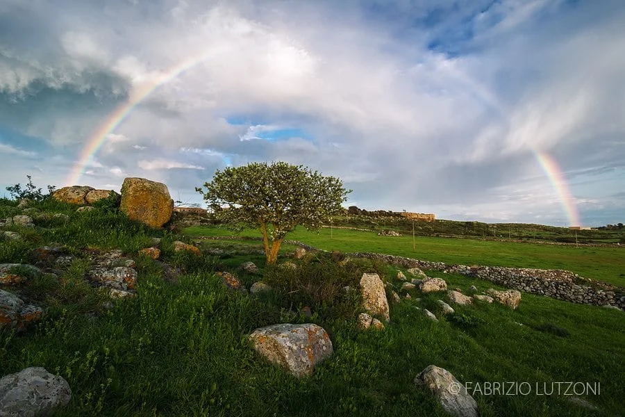 Il 13 aprile 2014 una bassa pressione alimentata da aria polare e accompagnata da correnti di maestrale attraversa il Tirreno apportando un veloce peggioramento sulla Sardegna. Non mancano i rovesci sparsi in tutta l’isola ma uno di questi viene magistralmente immortalato dal fotografo Fabrizio Lutzoni, che ringraziamo per la gentile condivisione, nel momento giusto al posto giusto. Ci troviamo infatti nell’affascinante location del nuraghe Succoronis, nel comune di Macomer, e le precipitazioni in allontanamento verso sud est vengono attraversate dai raggi solari producendo uno spettacolare arcobaleno.