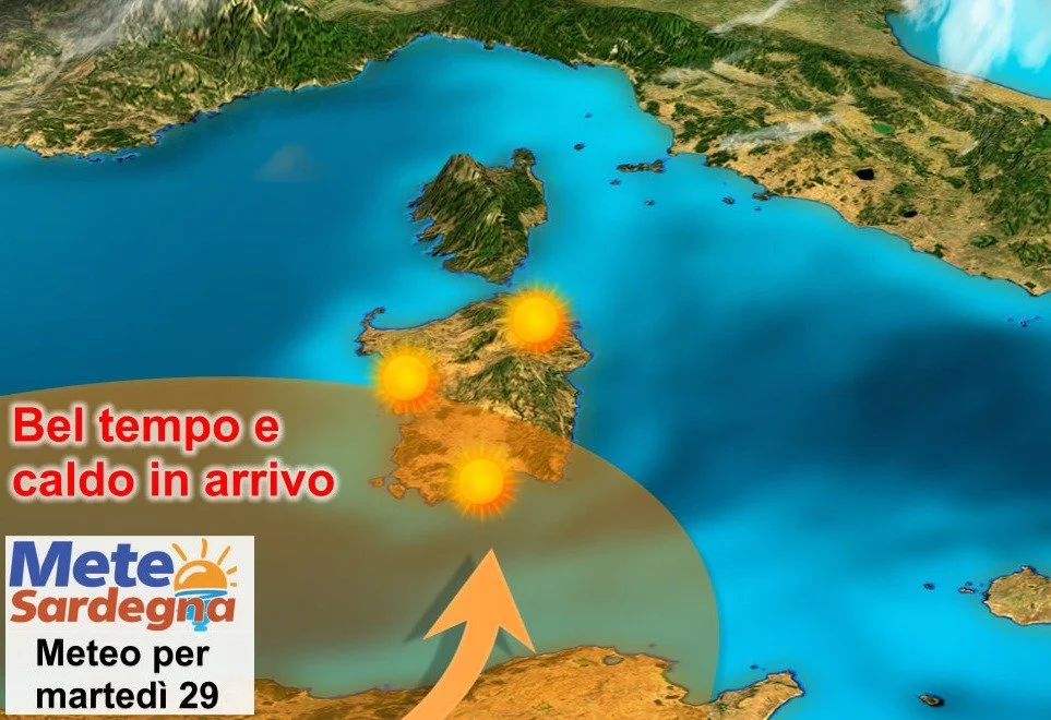 Martedì 29 generali condizioni di bel tempo, salvo qualche nube mattutina. Il soleggiamento favorirà un accentuazione del tepore diurno, con clima gradevole. Venti occidentali, con tendenza a disporsi meridionali dalla sera.
